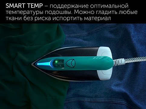 Технология SMART TEMP - поддержание оптимальной температуры подошвы. Можно гладить любые ткани без риска испортить материал.Технология равномерного распределения тепла по подошве "SMART HEAT".