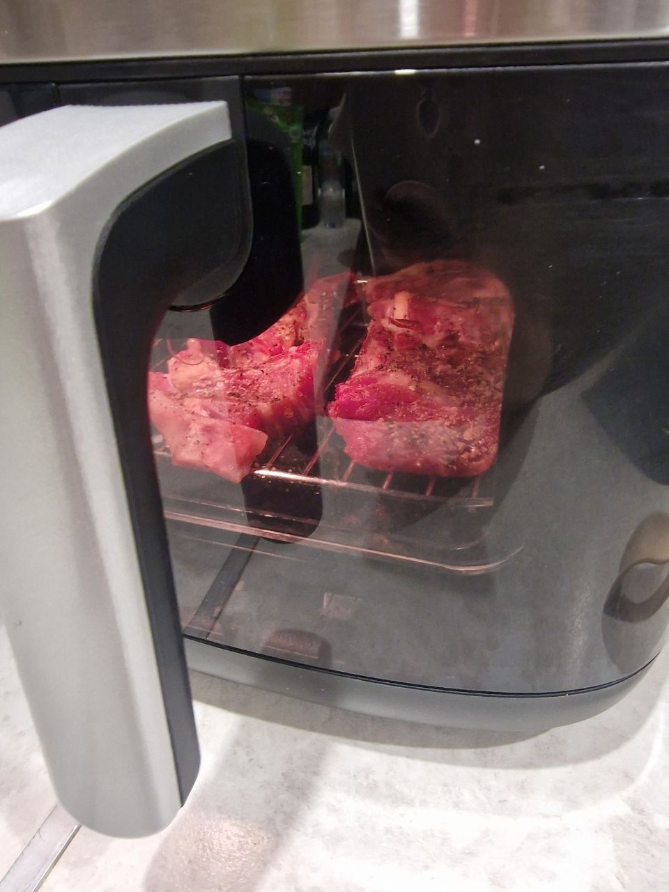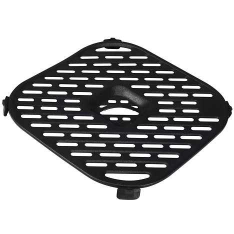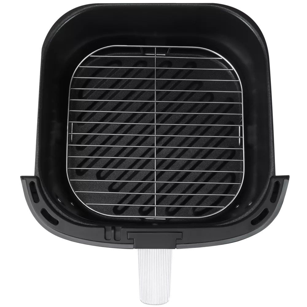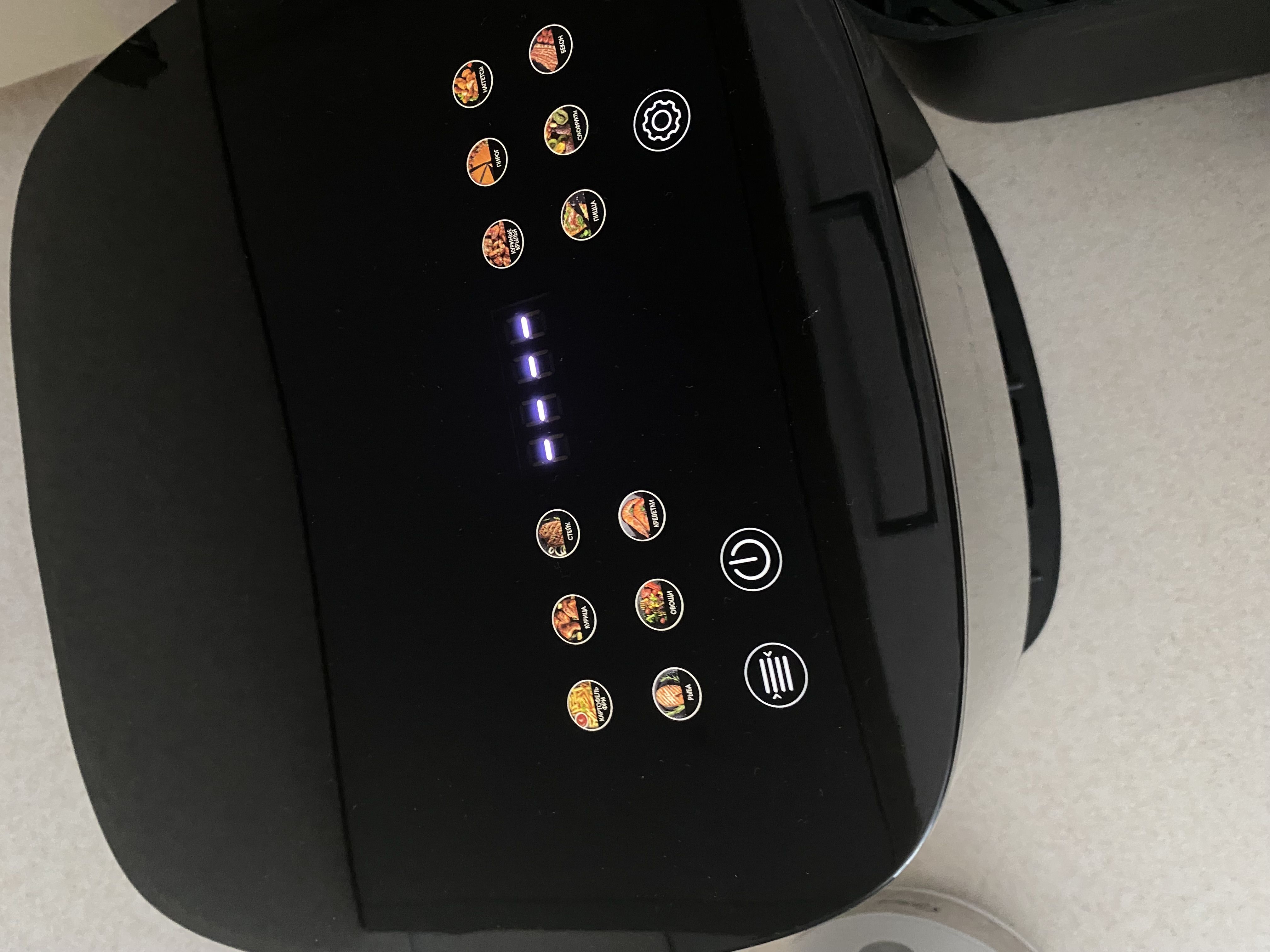 Оснащён сенсорным цветным дисплеем и 12 автоматическими программами: картофель фри, курица, куриные крылья, стейк, рыба, овощи, пирог, пицца, суфохрукты, наггетсы, бекон и креветки.