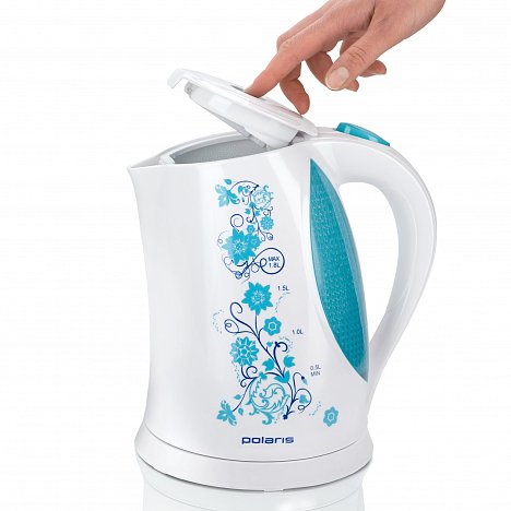 Нежный бело-голубой дизайн чайника Polaris PWK 1822CLR Floris blue будет дарить вам ощущение легкости и спокойствия. Красивый цветочный принт сделает чайник изюминкой вашей кухни.