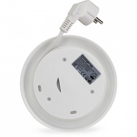 - Круглое основание, на которое устанавливается чайник для подключения, имеет отсек для скрученного сетевого шнура. Вы можете регулировать его длину. Чайник устанавливается на основание без какого-либо направления, повернуть его можно на 360 градусов.