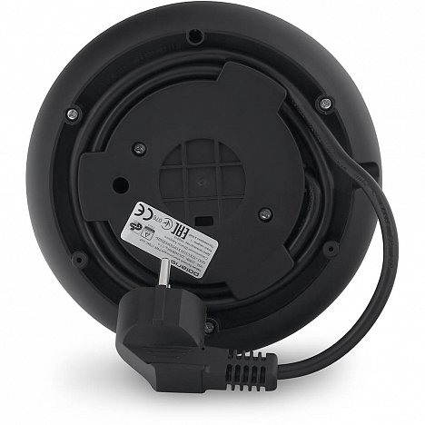 - Переключатель ВКЛ/ВЫКЛ расположен под удобной ручкой. А кнопка открывания крышки – на ее верхней части. Для работы прибор надо установить на круглую подставку.