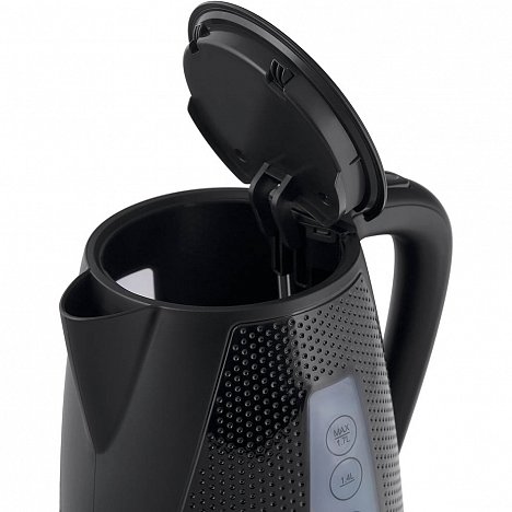 В названии модели не зря присутствует слово «golf». По поверхности черного чайника «рассыпано» множество мячиков. Круглые элементы использованы даже на шкале уровня воды.
