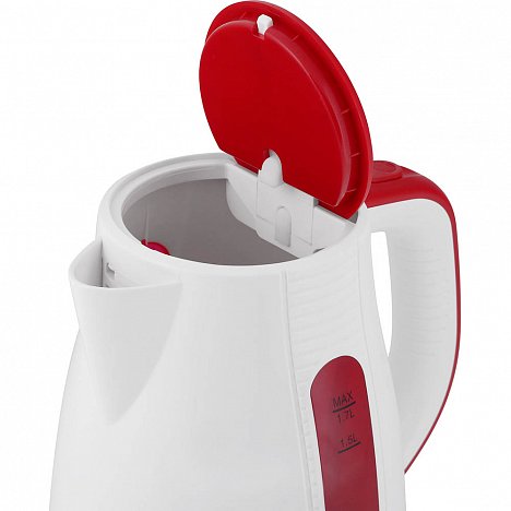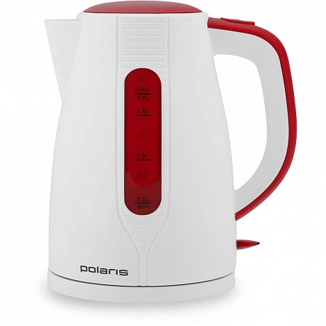 В названии чайника Polaris PWK 1796C white red отражены основные цвета его дизайна: белый и красный. Корпус сделан из качественного пластика.