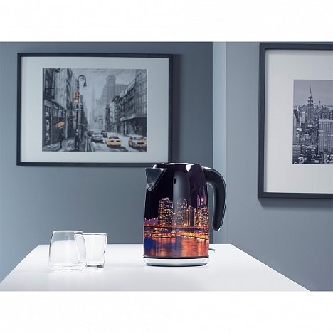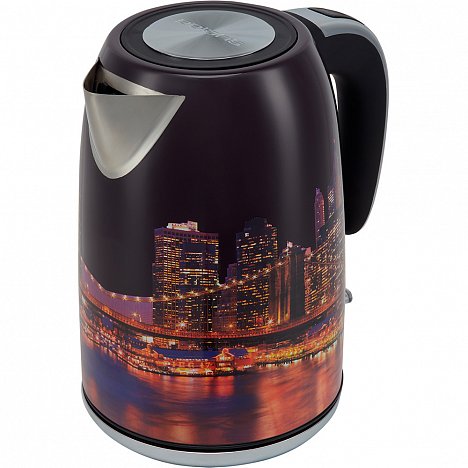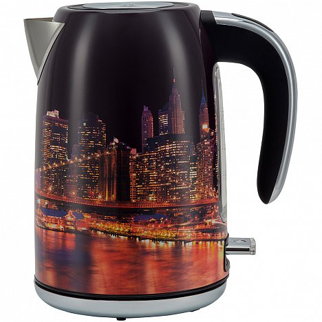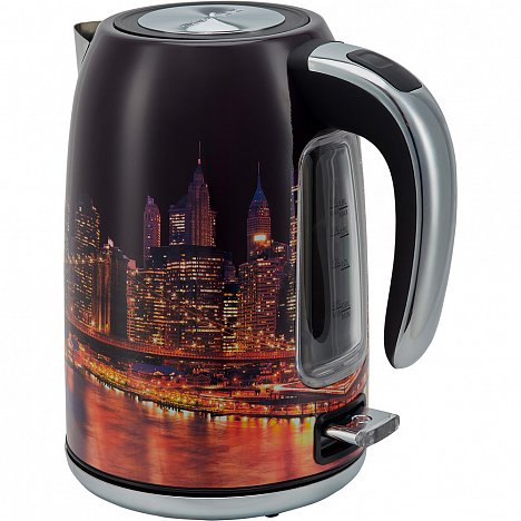 Чайник Polaris PWK 1853CA City – выбор тех, кто любит огни большого города. Дизайнерская идея в этой модели воплощена на темном глянце золотистым рисунком.