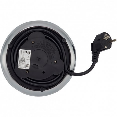 - Чайник для работы и хранения устанавливается на круглую подставку. Его можно поворачивать на ней в любую сторону благодаря центральному контактному элементу. А значит, вы сможете установить его тем ракурсом, что наиболее нравится.