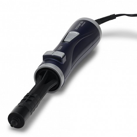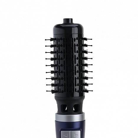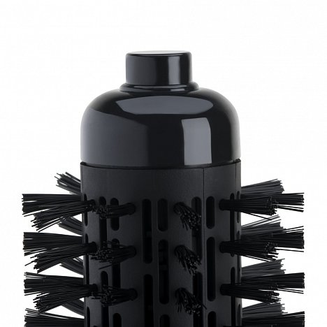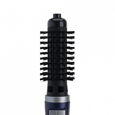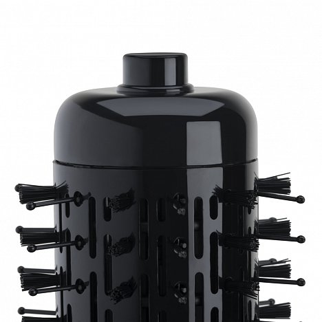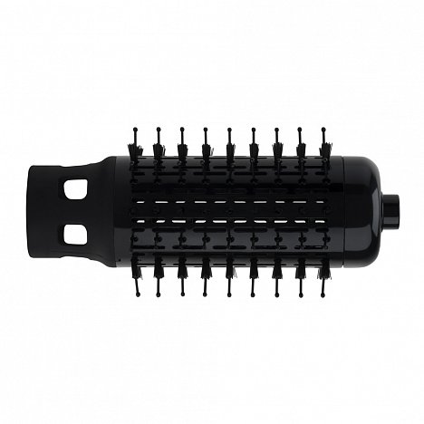 Фен-расческа укомплектован двумя круглыми насадками-щетками. Одна из них имеет диаметр 35 мм и сделана из термостойкого пластика. Вторая насадка более широкого диаметра — 50 мм. Она имеет керамическое покрытие, благодаря которому обеспечивается равномерный нагрев потока воздуха и, тем самым, волосы защищаются от пересушивания.