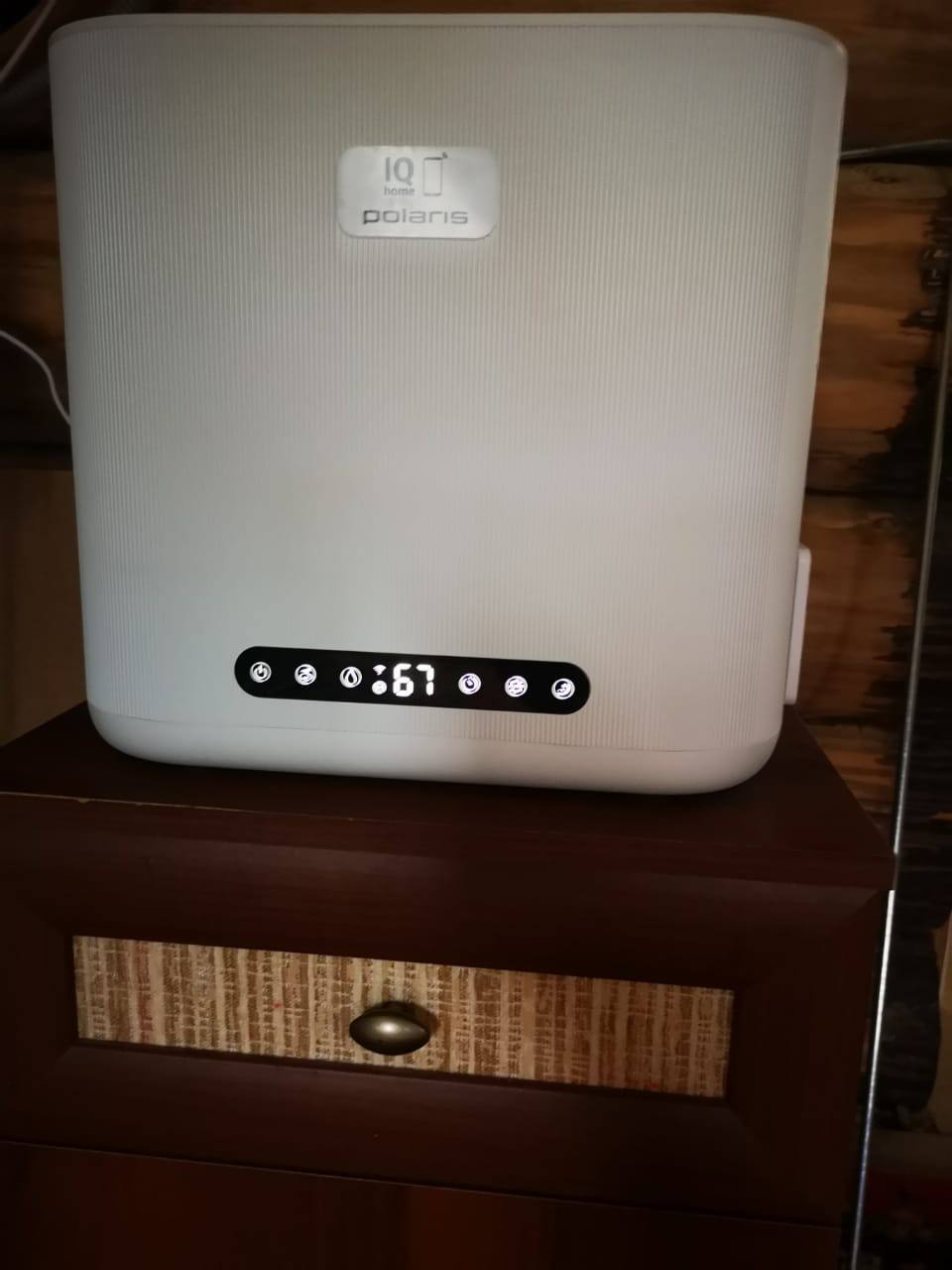 Решил наконец-то обзавестись увлажнителем и остановился на этой модели. Понравилось, что есть Wi-Fi, и все хвалят её за тихую работу. Взял сегодня, коробка приехала приличных размеров. Распаковал, поставил в спальне и сразу делюсь первыми ощущениями, пока ещё на эмоциях. На вид аппарат выглядит основательно: не дешёвая пластмасса, а аккуратный матовый корпус без блеска и отпечатков. Собран хорошо, ничего не скрипит, не болтается. Стоит белым кирпичиком и совершенно не выбивается из комнаты. Заправил водой, бак снимается без танцев с бубном, всё удобно. Включил, экран загорелся, управление понятное, я разобрался буквально за минуту и выставил влажность на 65%. Потом подключил к Wi-Fi через приложение. Процесс занял несколько минут и пару попыток, но в итоге всё законнектилось, и теперь можно следить за влажностью и температурой прямо с телефона. Комната действительно оказалась суховатой — всего 38%. Пар выходит плотной, но мягкой туманной струёй, без брызг. В обычном режиме слышен только ровный лёгкий гул и небольшое шипение, в целом, не напрягает. Включил ночной режим - стал ещё тише, осталось тихое шуршание, которое в спальне вообще не мешает. Пока всё выглядит очень перспективно. Особенно радует возможность управлять устройством с телефона, тихая работа и простота во всём. Даже инструкция особо не нужна. Есть и мелочи, которые можно отнести к минусам: он крупнее, чем кажется на фото, на тумбочке занимает место как полноценный прибор, а подсветку экрана нельзя выключить полностью, только притушить, так что в полной темноте она всё равно немного заметна. В остальном впечатления пока только положительные. Посмотрю, как поведёт себя ночью и насколько изменится ощущение по утрам, но старт у него точно многообещающий.