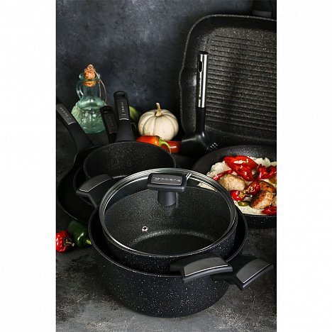MEGASTONE PRO-5 Инновационное 5-слойное антипригарное покрытие с керамической крошкой.Материал - кованый алюминий.