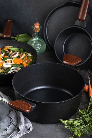 Посуда изготовлена из высококачественного кованого алюминия.