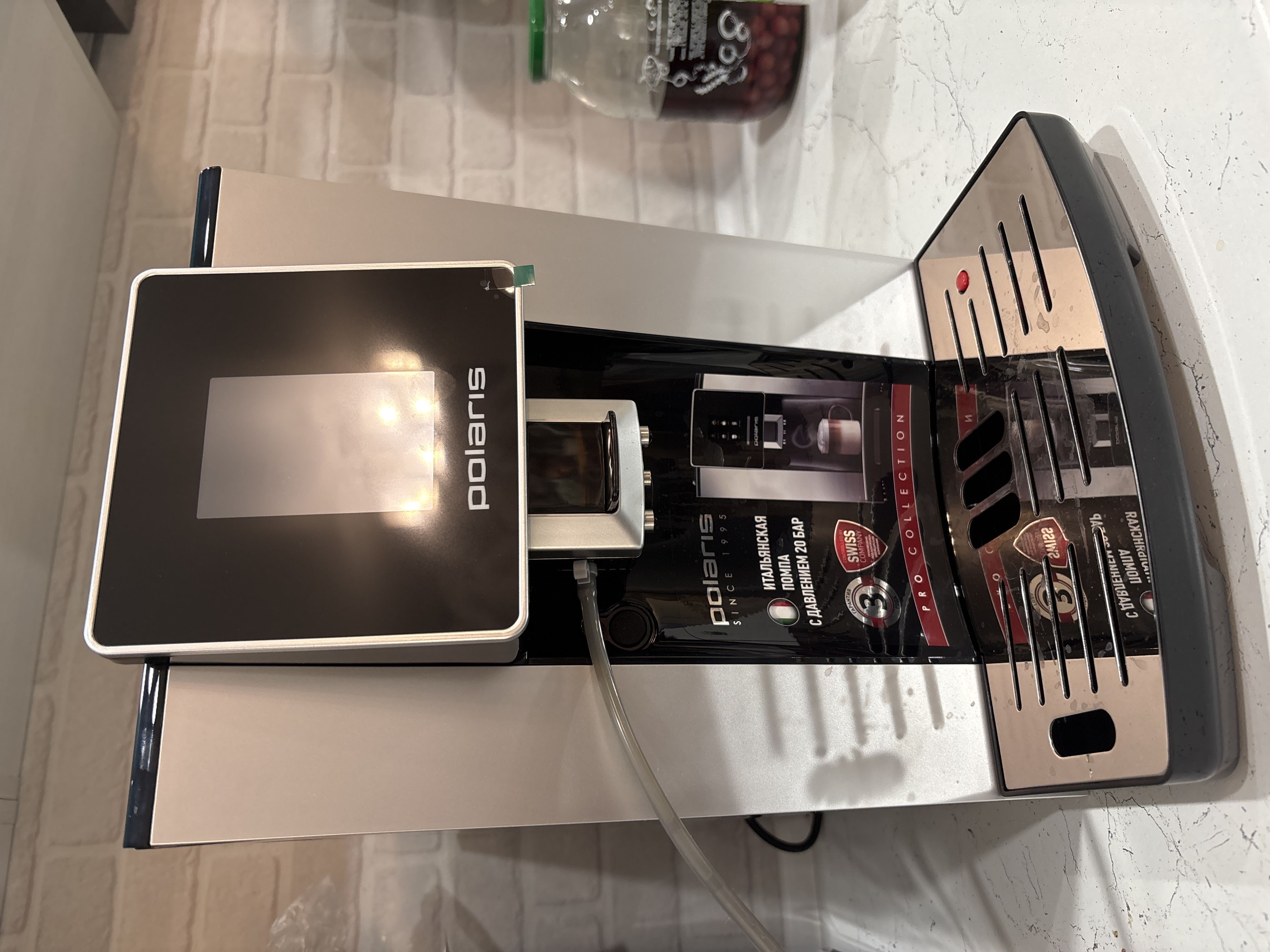 Кофемашина оснащена уникальной системой вспенивания молока Profi-cream, что позволяет готовить неповторимую молочную пену кремообразной консистенции. В данной модели предустановлено 6 автоматических программ: эспрессо, кофе, капучино, латте, горячее молоко и горячая вода. Каждую из этих программ пользователь может настроить индивидуально исходя из своих вкусовых предпочтений. Благодаря помпе итальянского производства с давлением 20 бар, кофемашина варит насыщенный эспрессо с превосходной кофейной пенкой. А цветной сенсорный дисплей с интуитивно понятным интерфейсом позволит приготовить любимый напиток всего одним касанием.