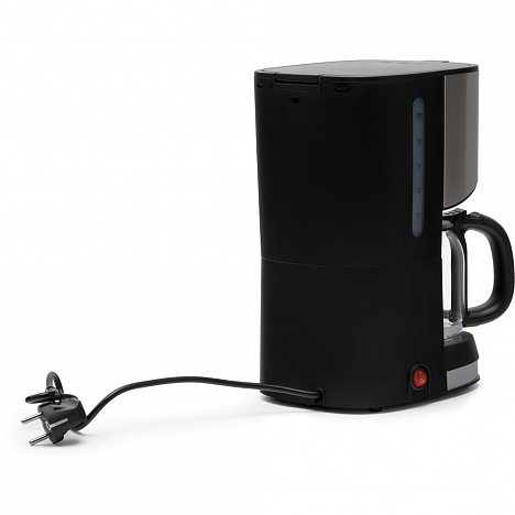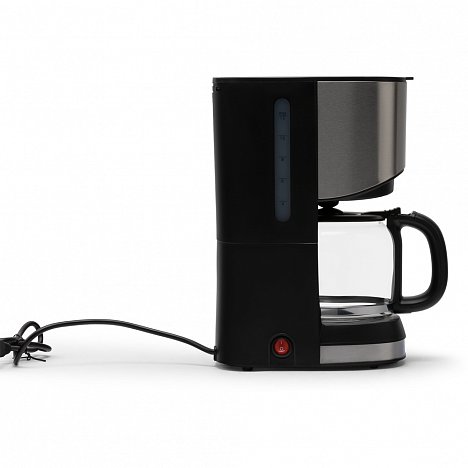 Простота устройства в механическом управлении. Чтобы получить до 1,2 л вкусного кофе, нужно засыпать молотый кофе в сетчатый фильтр, залить нужное количество воды и нажать кнопку включения. Определить уровень воды в резервуаре можно по шкале на прозрачном окошке. Измеряется объем в чашках – от 4 до 12. Подразумевается, что в одной чашке 100 мл.