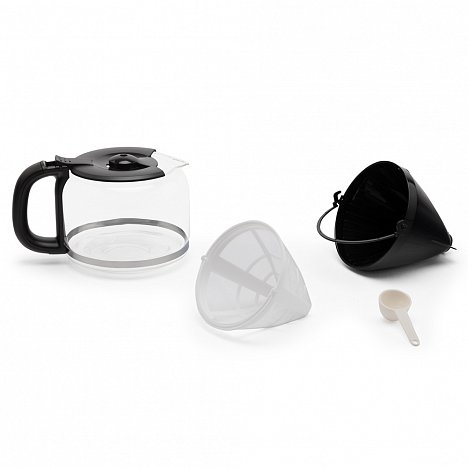 Кувшин для готового кофе для удобства имеет ручку и крышку особой формы. Приготовленный кофе стекает в отверстие в крышке. Если убрать емкость с подставки, подача кофе блокируется. Таким образом, не обязательно ждать, когда кофеварка сварит весь объем напитка. Можно вынуть кувшин, разлить готовый напиток и поставить кувшин обратно для дальнейшего приготовления.