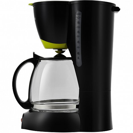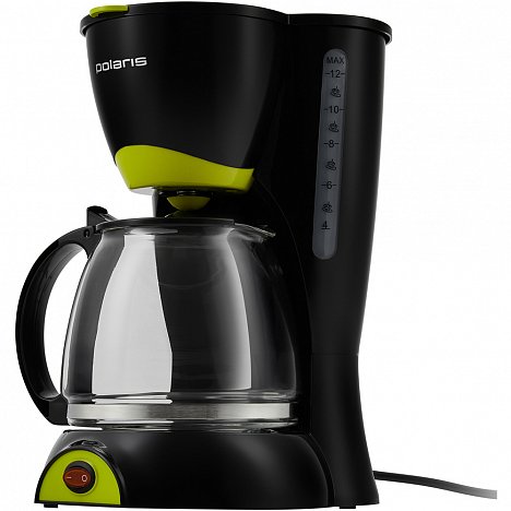 Плавные формы, черное глянцевое покрытие с салатовыми элементами, прозрачный кувшин для готового кофе – всё это делает внешний вид кофеварки Polaris PCM 1211 современным и красивым.