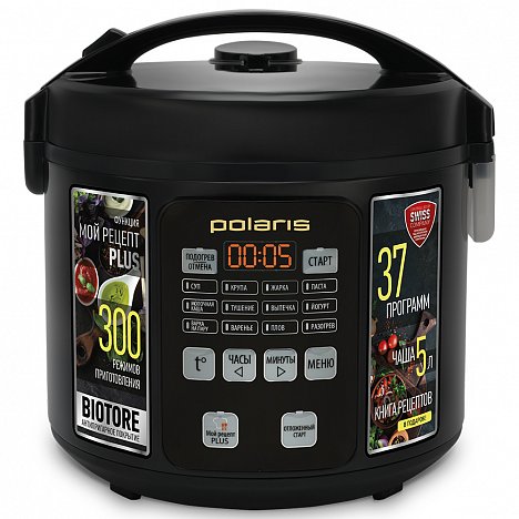 Режимы работы: Мой рецепт Plus, Суп, Крупа, Жарка, Паста, Молочная каша, Тушение, Выпечка, Йогурт, Варка на пару, Варенье, Плов, Разогрев.
