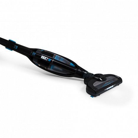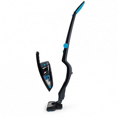 От основной ручки, нажатием всего одной кнопки, отделятся ручной блок. Этот маленький помощник пригодится для тех, кто хочет быстро и удобно очистить салон автомобиля, мебель, полки или собрать что-то рассыпавшееся. У ручного пылесоса небольшая выдвижная насадка, на которую можно надеть щеточку. Хранится щеточка в углублении прямо в ручном блоке.