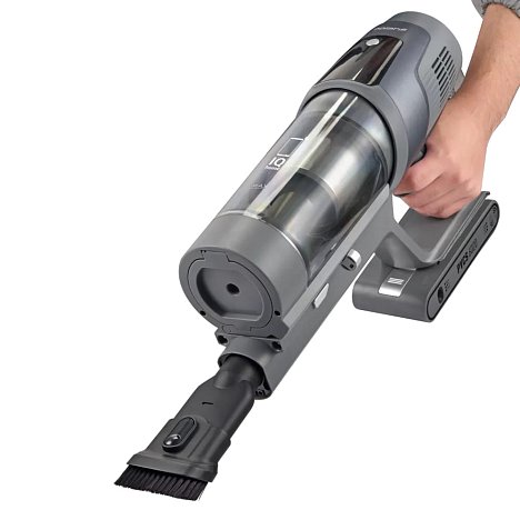 Технология Flex Motion дает свободу движения на 360 градусов благодаря сгибающейся трубе и особой конструкции устройства, что облегчает уборку труднодоступных мест. Встроенный контейнер для пыли объемом 0,45 литра очищается одним движением. В комплекте есть зарядная станция, обеспечивающая удобное хранение прибора и доп. насадок.