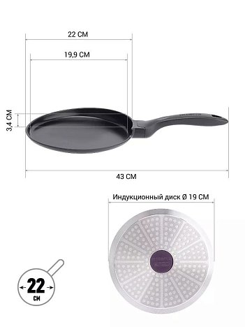 Одной из особенностей этой сковороды является ее уникальная форма, которая специально разработана для удобства приготовления ровных блинов и их легкого переворачивания. Блинная антипригарная сковорода оснащена эргономичной бакелитовой ручкой с покрытием "Soft Touch", которая не нагревается в процессе готовки и обеспечивает удобное и безопасное использование.