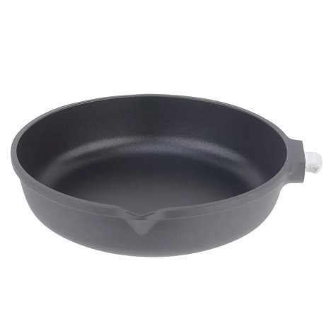 Сковорода литая Calido-26FP со съемной ручкой и крышкой. Диаметр сковороды - 26 см. Материал - высококачественный перерабатываемый литой алюминий. Внутреннее высокопрочное антипригарное покрытие XYLAN. Специальное утолщенное дно 6 мм. Съемная ручка с покрытием "Soft Touch". Носик для удобного слива жидкости. Крышка из жаропрочного стекла с отверстием для выпуска пара и силиконовым ободом в комплекте.Подходит для всех видов плит, включая индукцию. Можно мыть в посудомоечной машине в использованием неагрессивных моющих средств. Гарантия 3 года. Диаметр дна 21 см, диаметр индукционного диска 20 см.