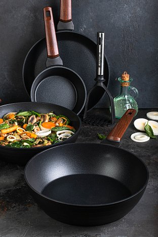 Эргономичная бакелитовая ручка с покрытием Soft Touch не нагревается и не скользит.