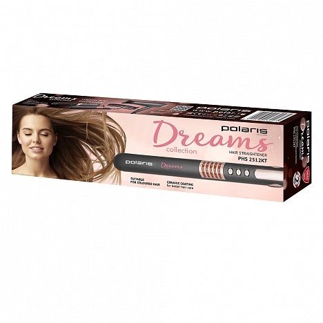 Еще одним ярким представителем из коллекции устройств для создания причесок Dreams является стайлер Polaris PHS 2512KT. Как и все приборы из данной коллекции, он выполнен в элегантной розово-серой гамме и отвечает самым требовательным запросам, предъявляемым к характеристикам подобных устройств.