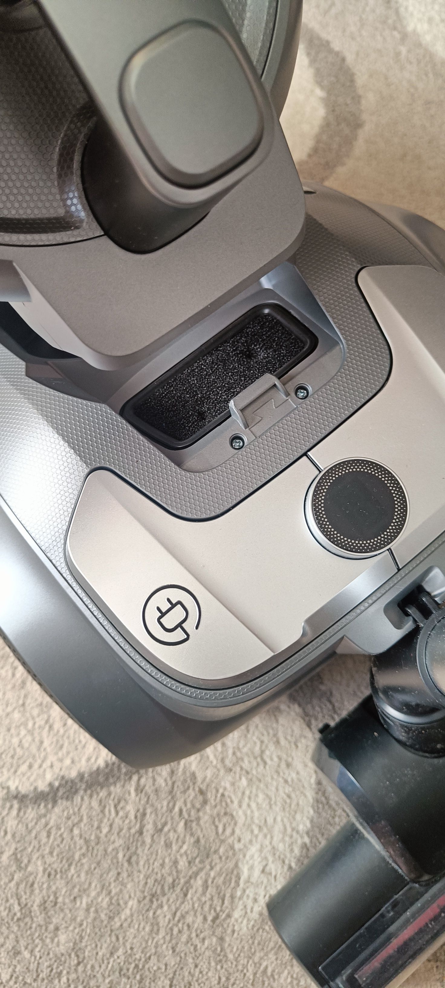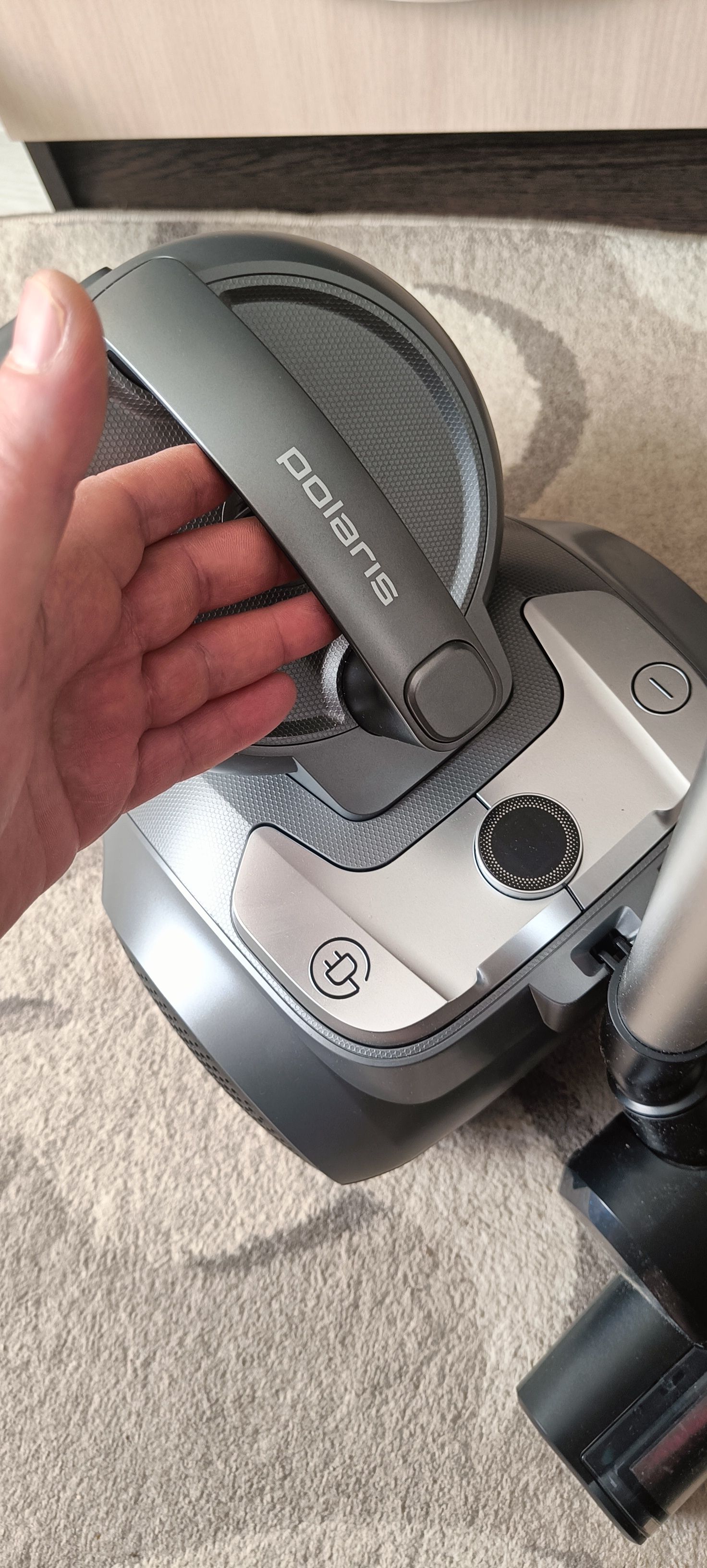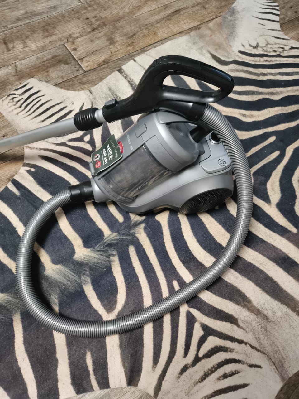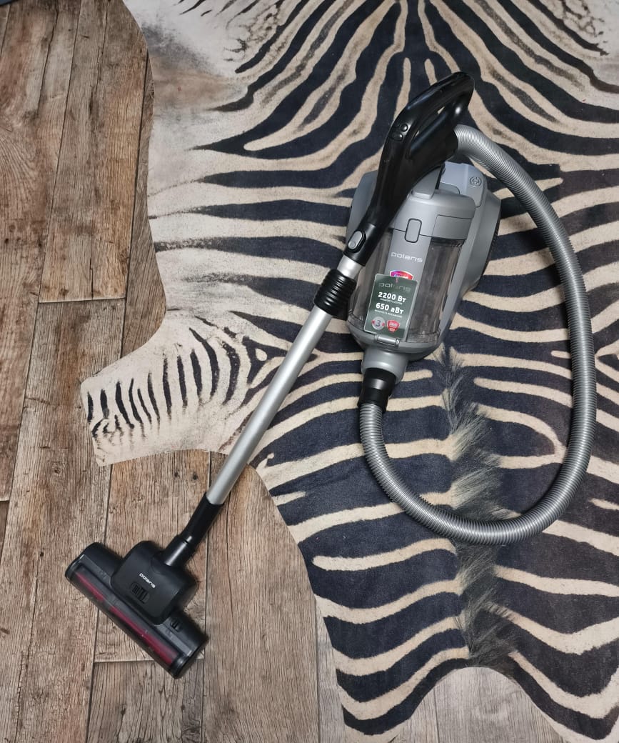 Пылесос циклонного типа с мощностью мотора 2200 Вт и мощностью всасывания 650 аВт.