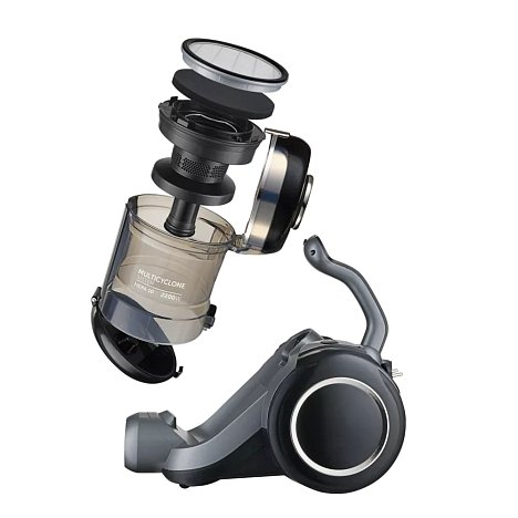Пылесос циклонного типа с мощностью мотора 2200 Вт и мощностью всасывания 650 аВт.